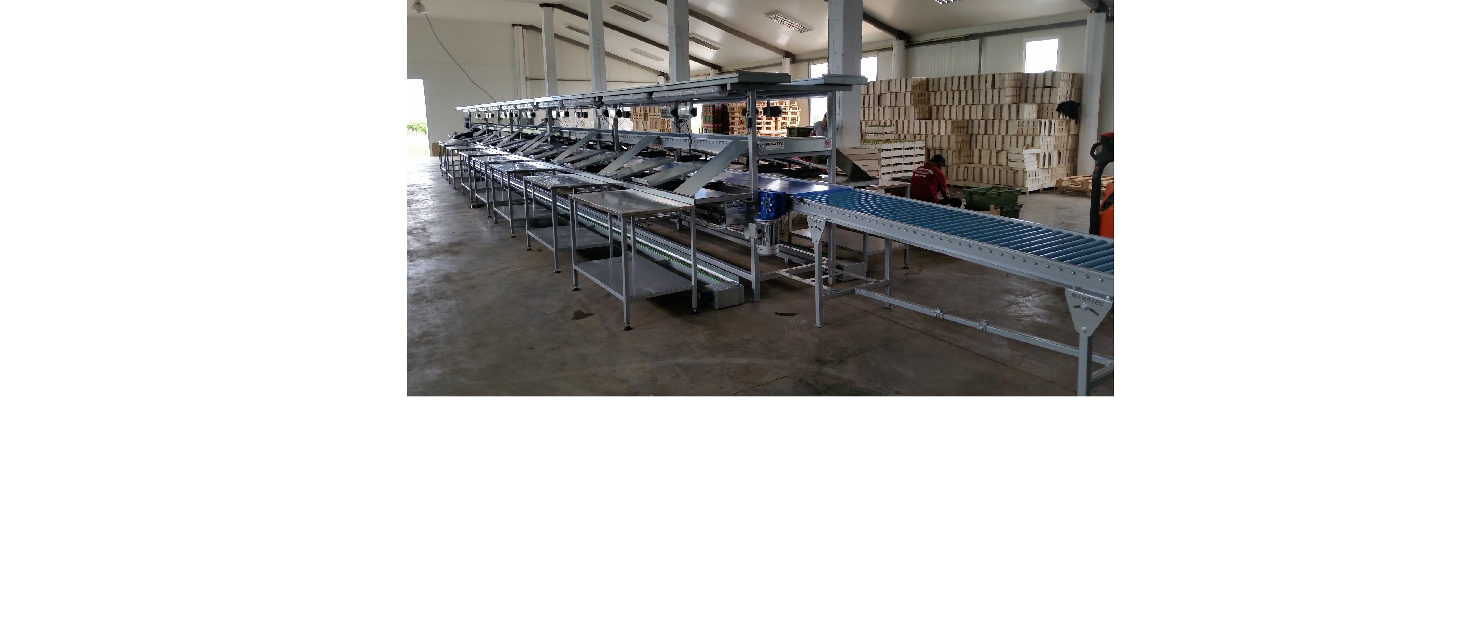 • Ραουλομεταφορέας γεμάτων κιβωτίων, αποτελούμενος από ράουλα PVC ειδικού τύπου, με ειδικά ρουλεμάν και στις δύο άκρες για αθόρυβη λειτουργία