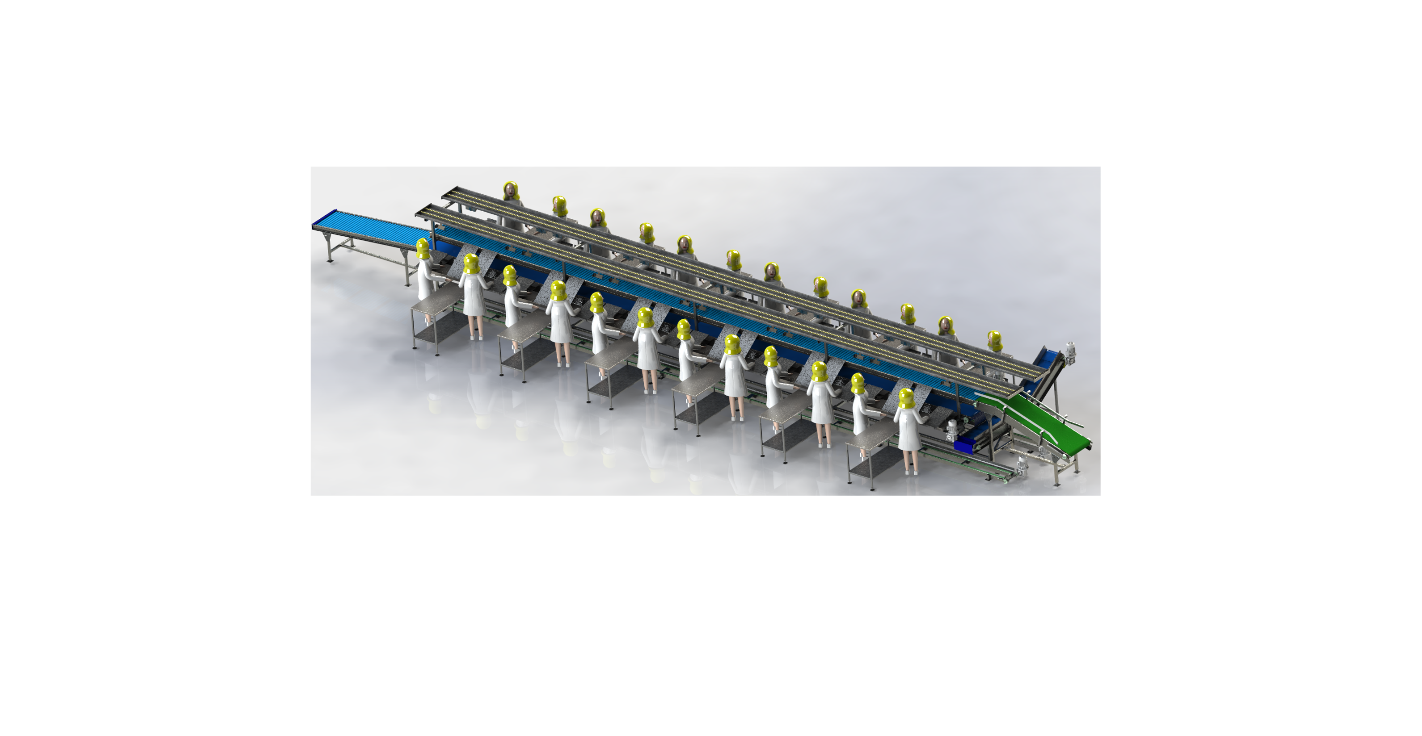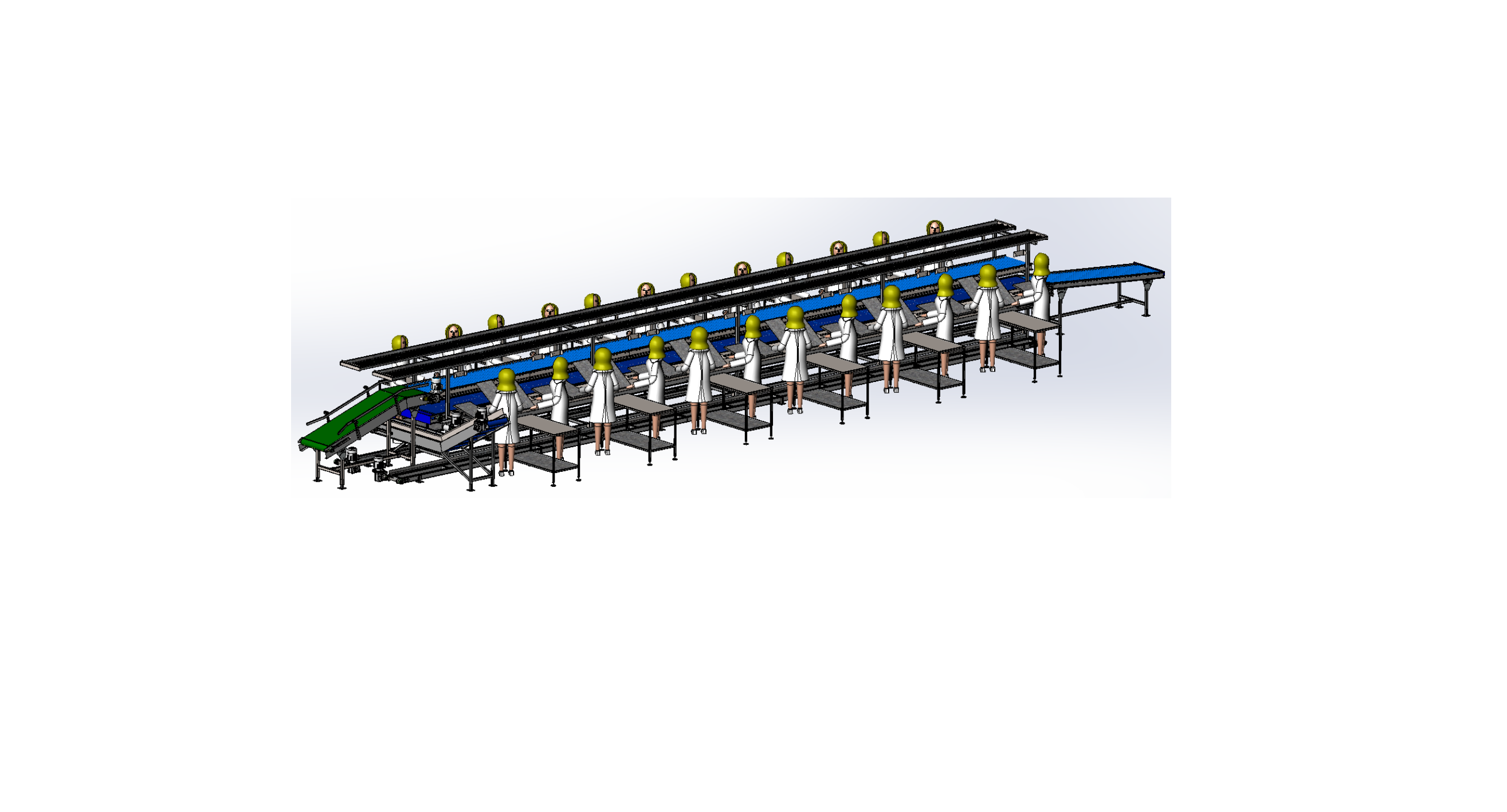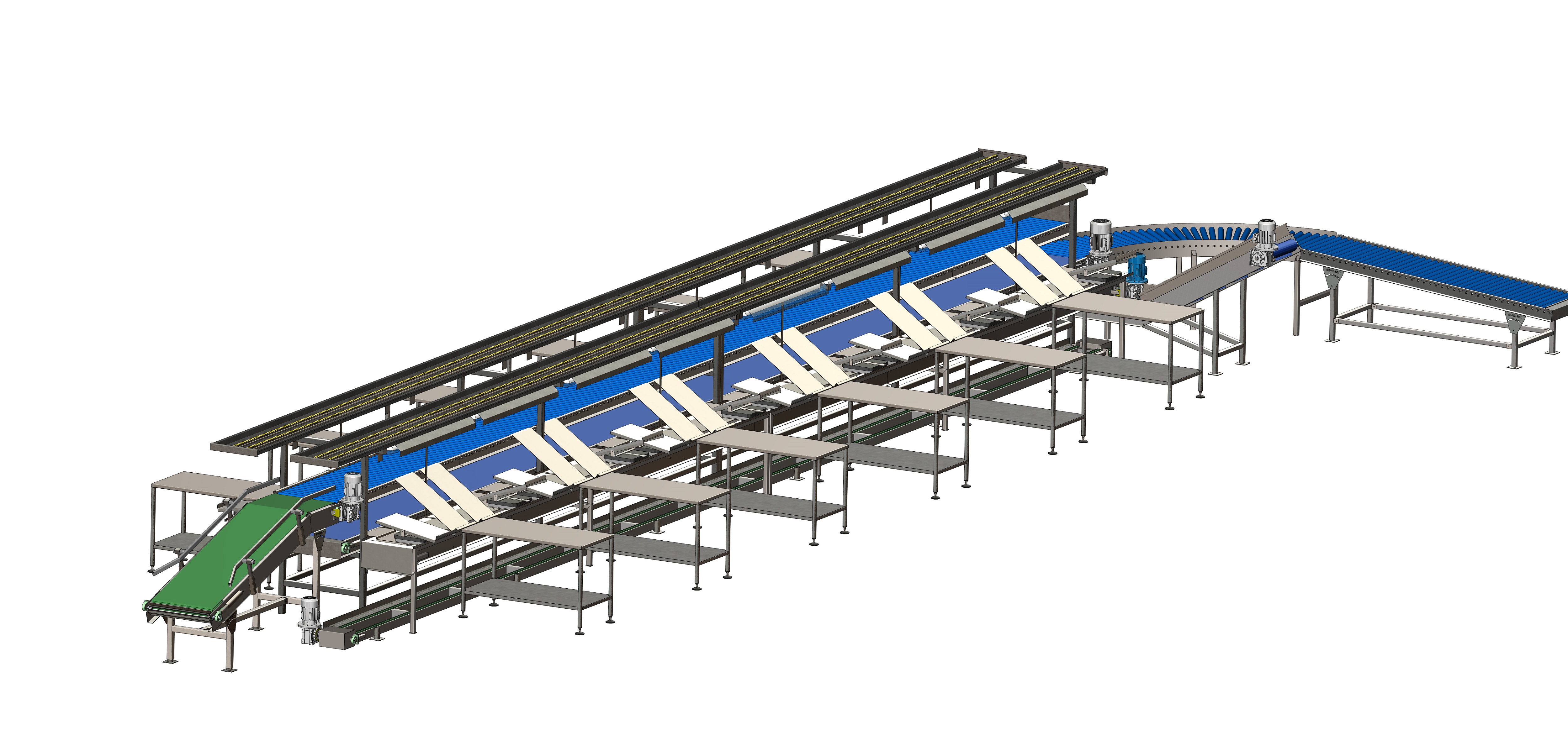 • Βοηθητικά τραπέζια εργασίας, κατά μήκος και των δύο πλευρών της γραμμής
