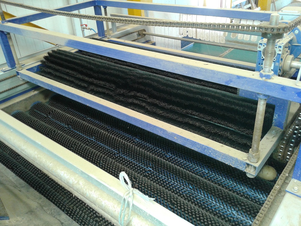 • Series of rotating, cylindrical brushes for the dry brushing and cleaning of the product