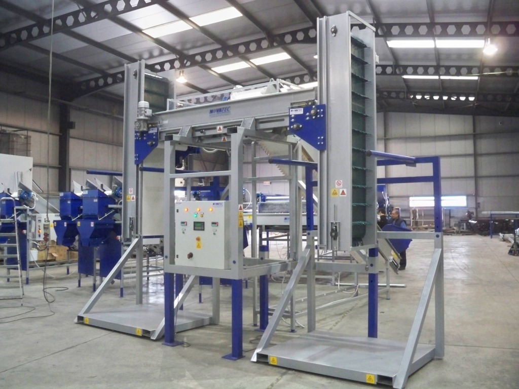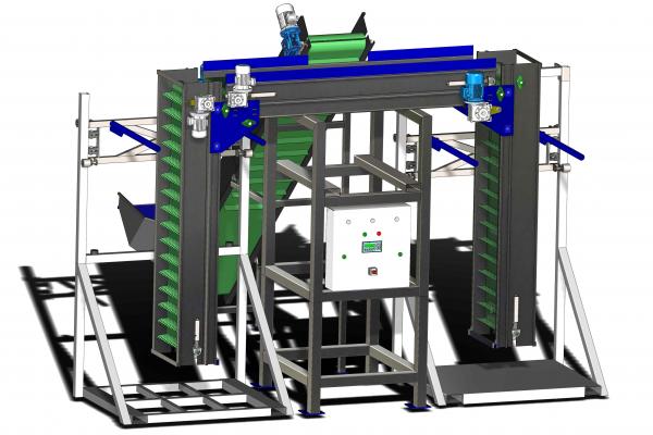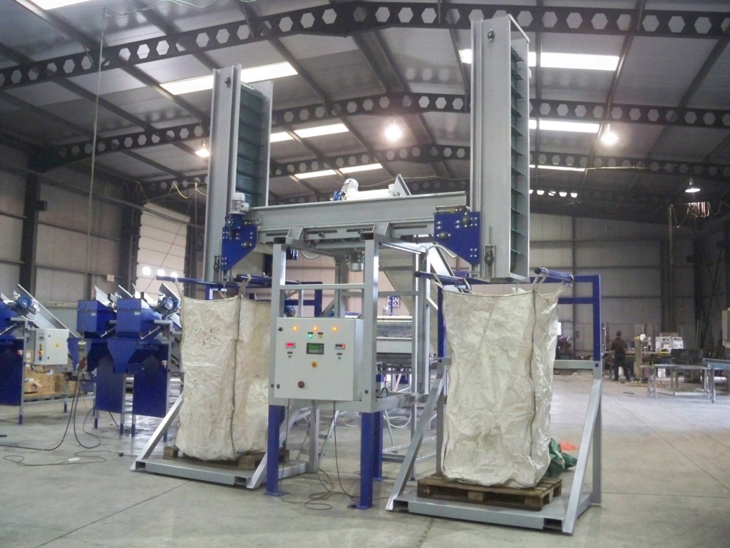 The machine is suitable for filling various size of Big - Bag (Jumbo Bags) and Pallet Boxes (Bins), in an automatic mode. Suitable for products such as potatoes, onions, carrots, garlic and other hard root vegetables for filling sacks, bags and pallet box with sorted and cleaned products, helping in quick and easy packaging and storage in cold rooms or in their transport. The filling of bags or boxes is achieved in a very gentle & smooth way by preventing products hitting, through a lifting platform, controlled by photocell sensors.