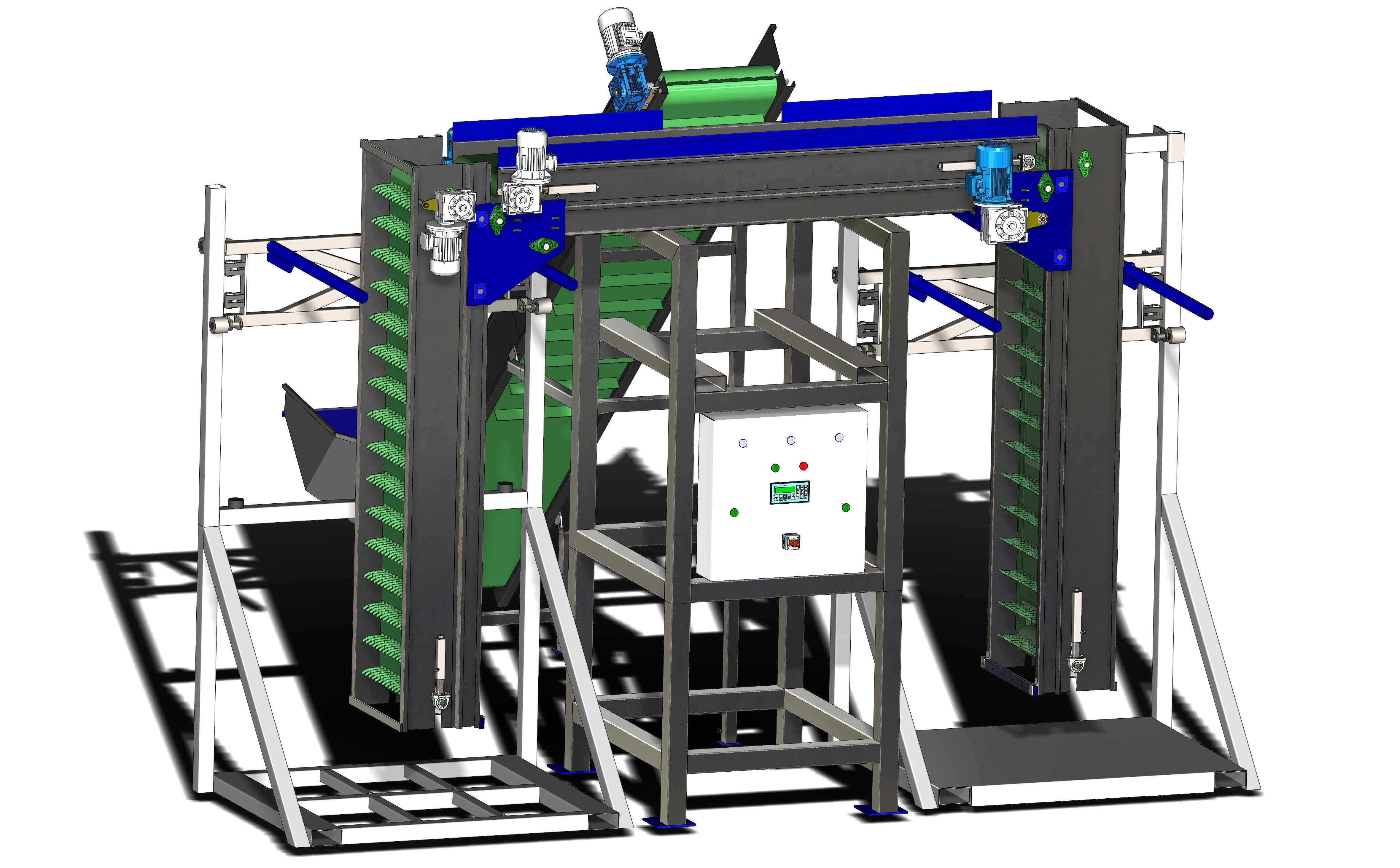 - Two (2) main drive by means of proper gear motor for the lifting of the Finger Belts