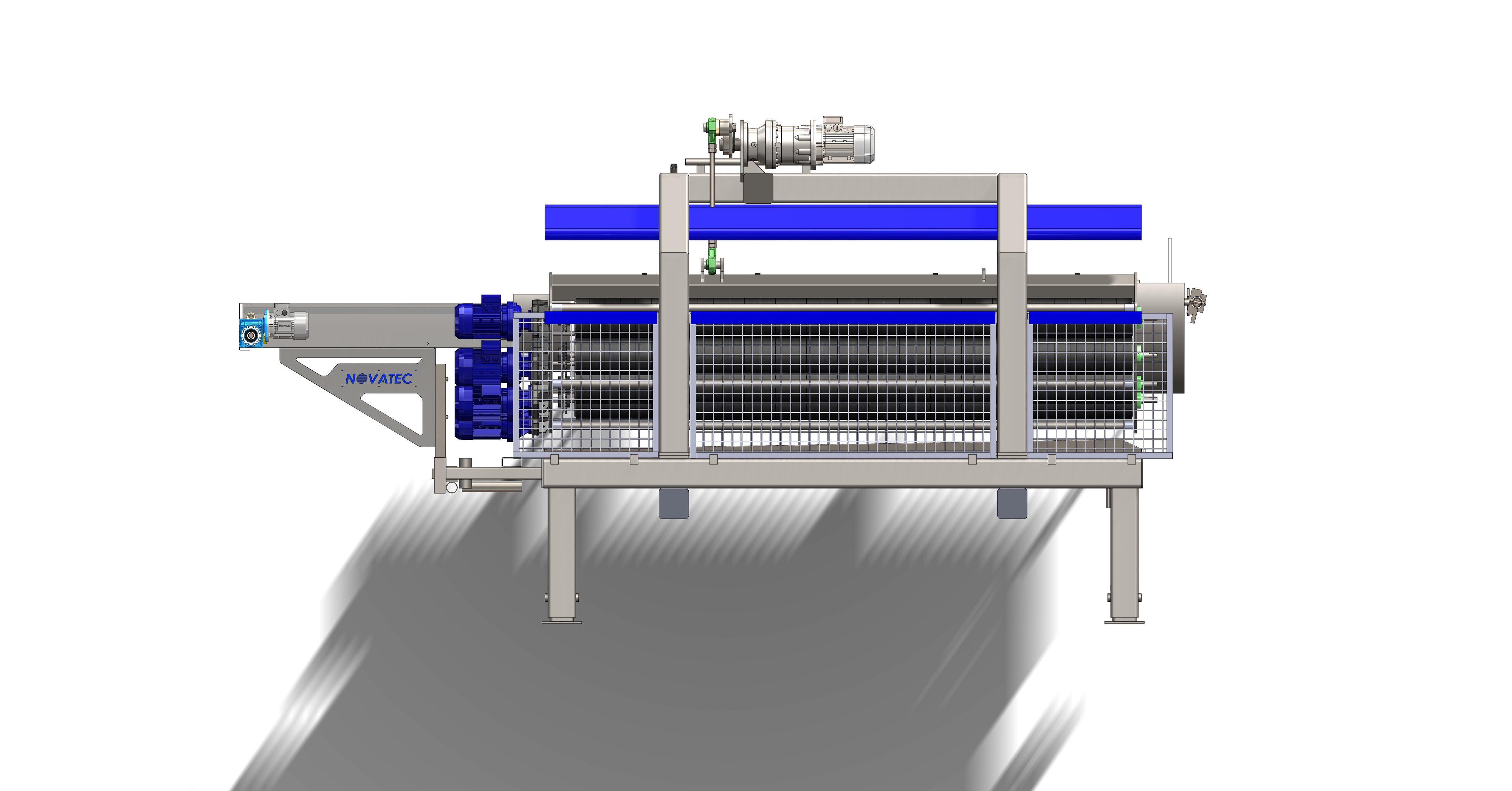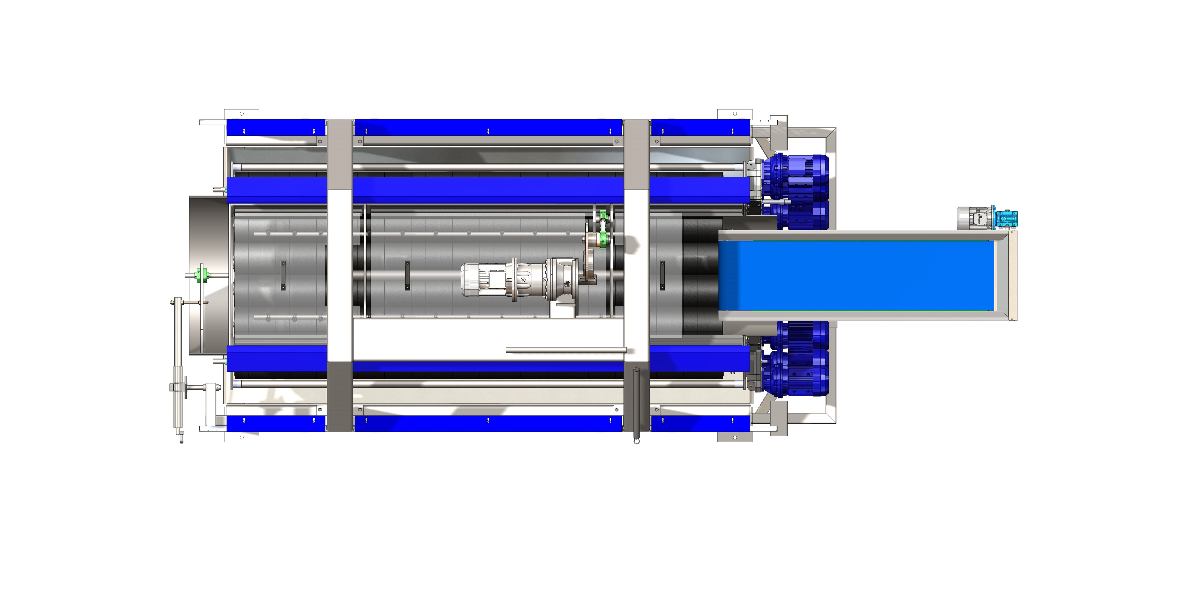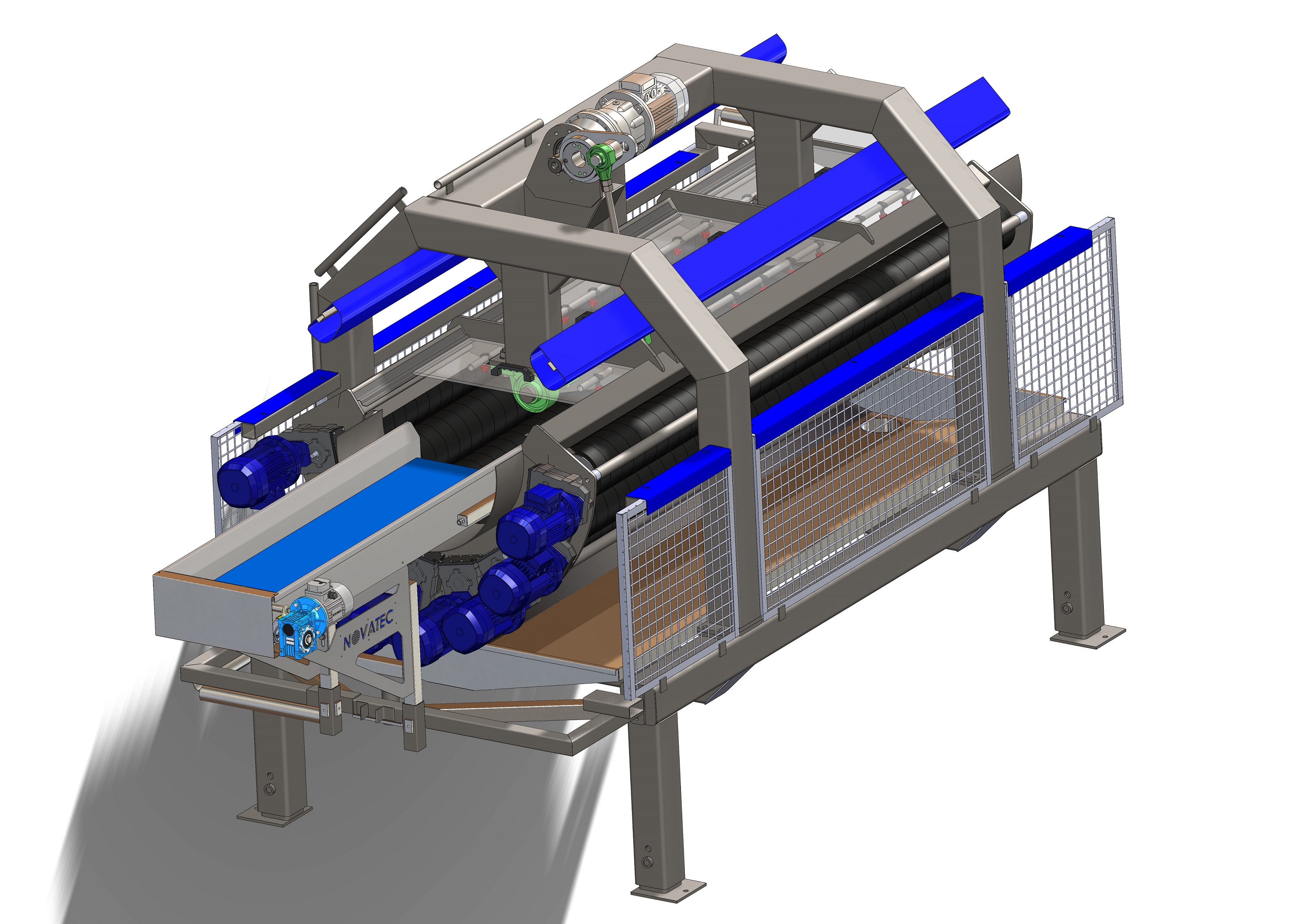 - Περιστροφή των βουρτσών που είναι τοποθετημένες μέσα στο ημικυκλικό βαρέλι, μέσω ηλεκτρομειωτήρα κατάλληλης ιπποδύναμης και ηλεκτρονική αυξομείωση ταχύτητας (Inverter)